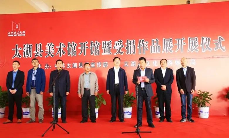 10月17日上午,太湖县美术馆开馆暨受捐作品展开展仪式在县体育馆全民健身中心举行。县委书记程志翔,县长朱小兵,县政协主席赵福南,县委常委、宣传部长李加生,县委常委、组织部长、统战部长阮波,县人大常委会副主任张超宜,副县长彭林观看了美术展。赵福南宣布县美术馆开馆暨受捐作品展开展并与李加生、张超宜、彭林共同为县美术馆揭牌。